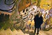 Antes de que oscureciera, el grupo formado por Rafael Zafra, Javier Azanza, Rafael García Mahíques, John Cull, Cristina Osswald, José Julio García Arranz, Víctor Mínguez, Ignacio Arellano y su hijo Salvador (quien, por cierto, inauguraba una exposición de fotografías sobre la India, hechas con Santiago Fernández Mosquera) llegamos a la plaza de la Catedral y aún pudimos ver algunas cosas: los azulejos del claustro, que están restaurando, el progama iconográfico de las virtudes en el artesonado de una sacristía, las omnipresentes –y bastante sucias– gaviotas, unos graffitti en un pasadizo hacia el río.