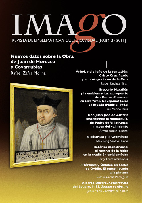 Es un número lleno de aportaciones relevantes y un paso más en la consolidación de esta revista como publicación de referencia internacional en su campo. Si tuviéramos que destacar un artículo sería el de Rafael Zafra, que pone orden en la biografía y la bibliografía de Juan de Horozco y Covarrubias, autor central en el desarrollo de la emblemática hispana. Zafra, como ya hiciera en su edición de la traducción española de Alciato, deslinda, recompone y asienta un conjunto de informaciones que suelen venir confusas en repertorios y manuales, especialmente las referidas a las ediciones de los Emblemas morales (Segovia, 1589 y 1591, y luego Zaragoza 1604). Pero sobre todo aclara, siempre acudiendo a materiales de primera mano, el pequeño embrollo de la derivación latina de los Emblemata moralia (Agrigento, 1601), versión ampliada en número de emblemas pero reducida en cuanto a la extensión de los textos, ahora en latín, de los Emblemas morales y que no hay que confundir con unas Empresas sacras o espirituales (seguramente Agrigento, 1597) que fueron quemadas por orden del Obispo de Palermo sin que quedara un solo ejemplar. Aclara también la peculiaridad de Symbola sacra (Agrigento, 1601), donde puede que Horozco aprovechara los grabados de esos emblemas quemados unos años atrás. Por último aporta un manuscrito autógrafo inédito de Juan que demuestra la estrecha relación que mantuvo siempre con su hermano Sebastián de Covarrubias.